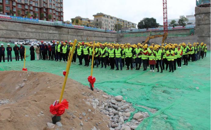 活動現(xiàn)場彩旗飄揚,人潮涌動,施工隊伍整齊列隊,迎賓通道流光溢彩,主持人登場介紹現(xiàn)場的領導與嘉賓,天源一號項目開工奠基儀式由此正式拉開帷幕。