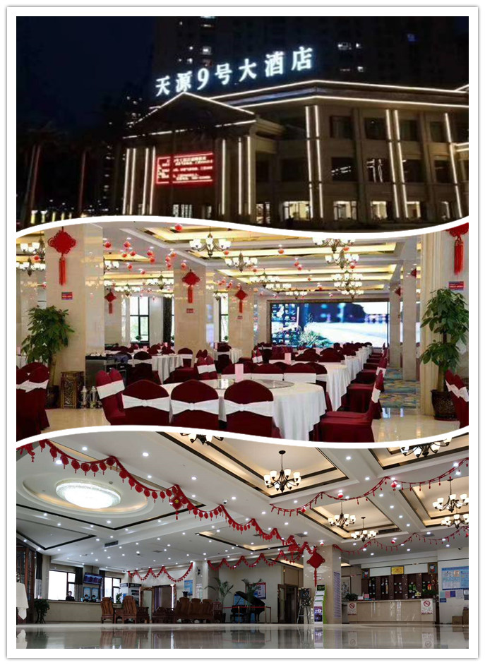 天源9號(hào)大酒店是一家集餐飲宴會(huì)、住宿、會(huì)議、休閑娛樂(lè)于一體的綜合大型酒店,現(xiàn)已全面消毒并恢復(fù)營(yíng)業(yè)。