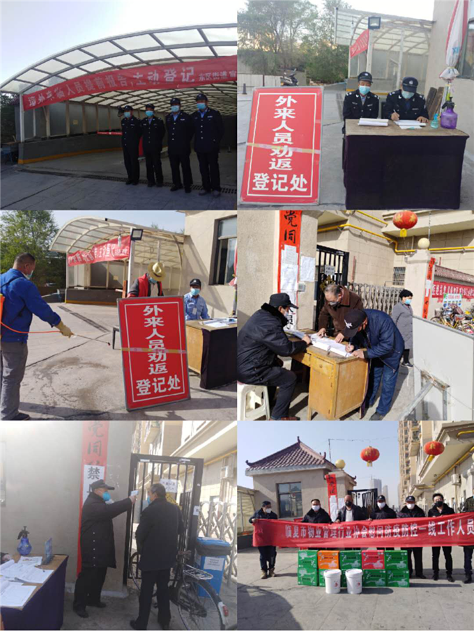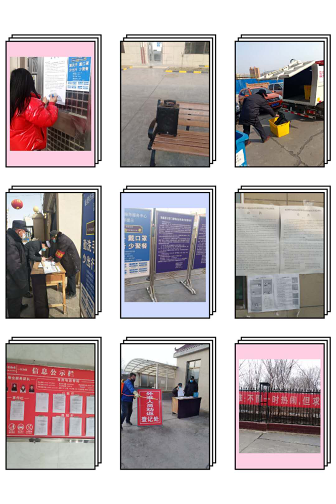 物業(yè)公司通過在小區(qū)、樓道張貼各類通知、通告,利用橫幅、展板等方式加強(qiáng)防控政策宣傳。為防止外來人員進(jìn)入小區(qū), 降低病毒傳染的可能性,社區(qū)工作人員與我物業(yè)公司對(duì)業(yè)主發(fā)放臨時(shí)出入證和防控宣傳單。提醒業(yè)主盡量少出門、不聚集,對(duì)不自覺佩戴口罩的業(yè)主進(jìn)行勸阻,并對(duì)進(jìn)出人員開展體溫檢測及登記 。